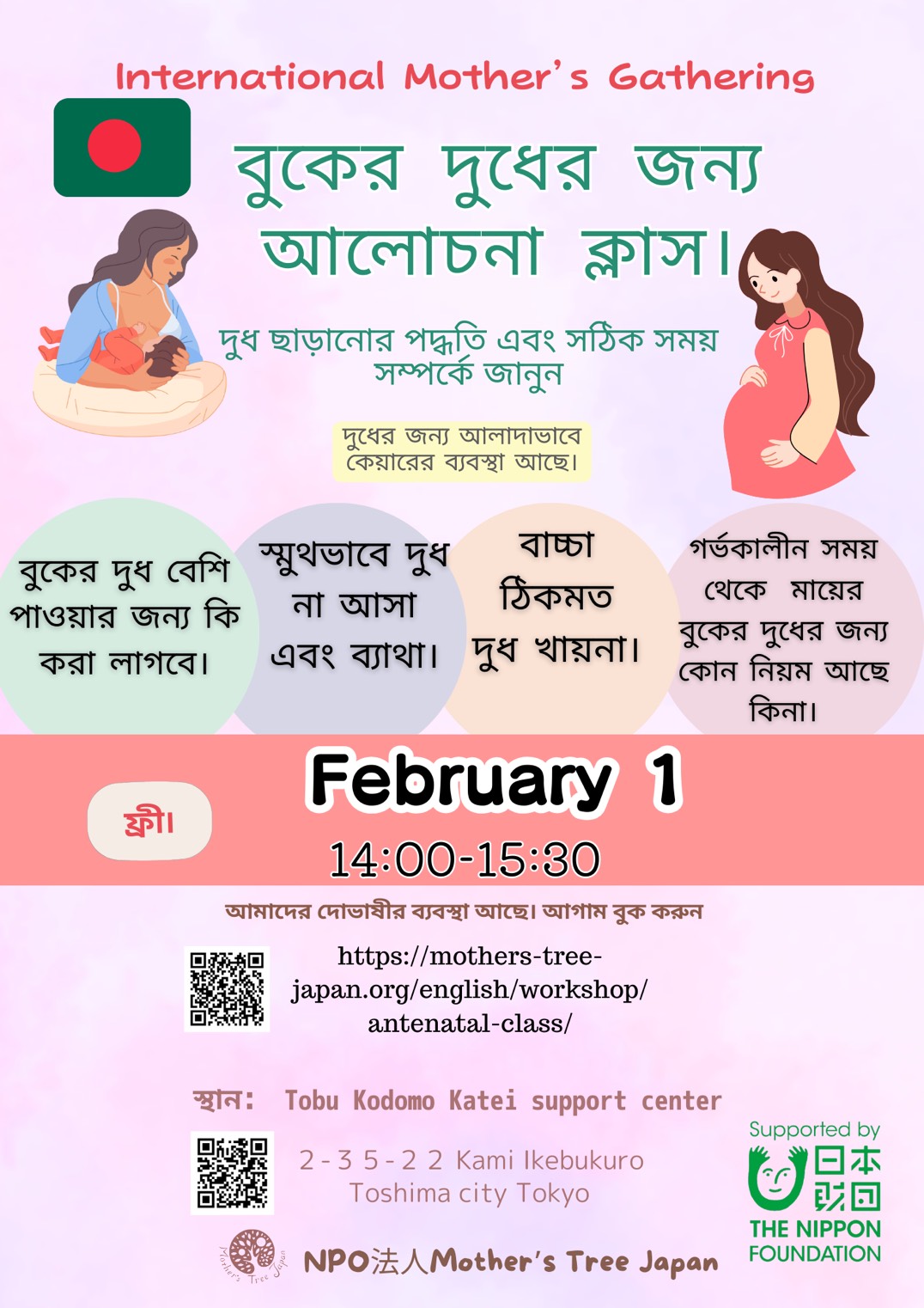 বিদেশী মায়েদের জন্য প্রসবপূর্ব ক্লাস (সামনাসামনি・online না)
