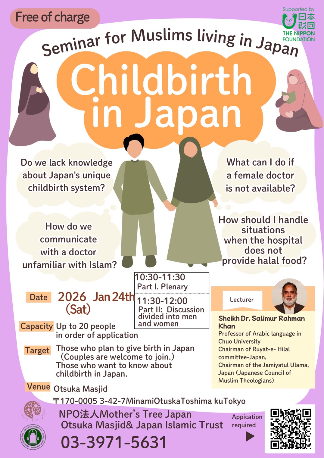 Dr. Saleem will answer your questions about childbirth in Japan, referencing Hadiths and Islamic teachings. -